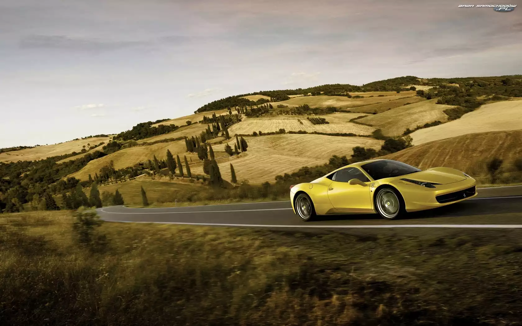 Droga, Żółte, Ferrari- Zdjęcia samochodów