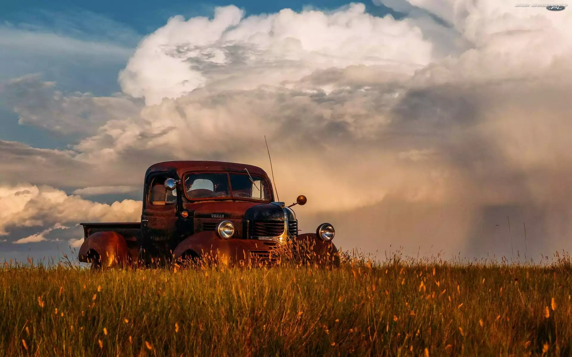 Chmury, Półciężarówka, Łąka- Zdjęcia samochodów