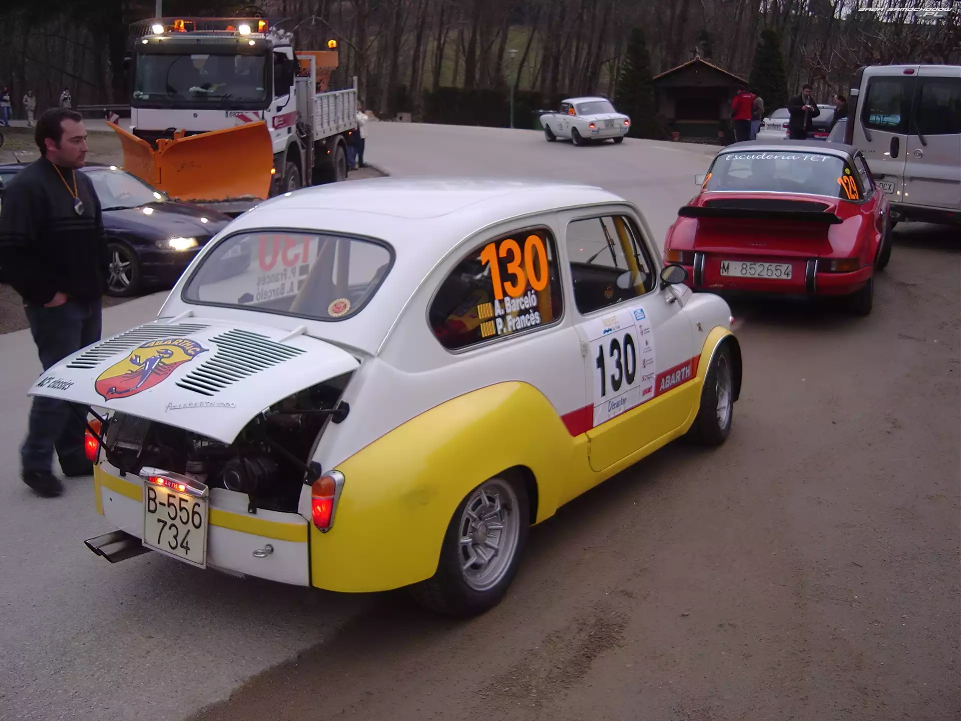 Wyścigówka, Alfa Romeo 155, Spojler Kabriolet, Zabytkowe, Porsche 911 Felgi, Koła, Światła, Bugatti, Opony Collezione 1957, Fiat 500C, Seria limitowana Subaru, Rajdowe Bentley T1 Zimowy, Subaru Impreza, Rajd Maserati, koła znaczek Mitsubishi Baja Raider Dacia 1300, Rajdowa maska, Alfa Romeo, koło Fiat 500, Pomarańczowe, Plac, Drzewa, Auto, Niebo zderzak , opony, Ford , światła szyba lusterka, Plymouth, lampy