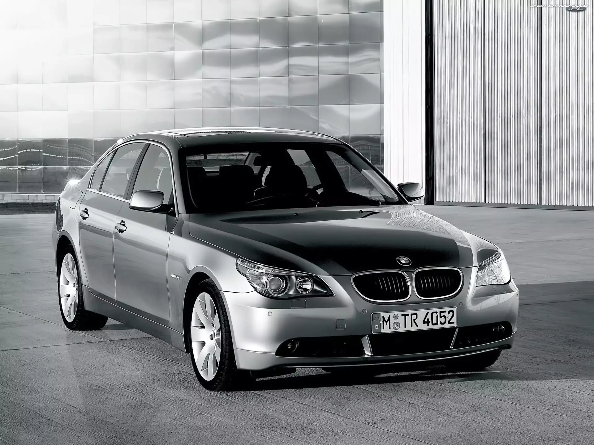 Szkło, Budynek, BMW 5, Silver, E60- Zdjęcia samochodów