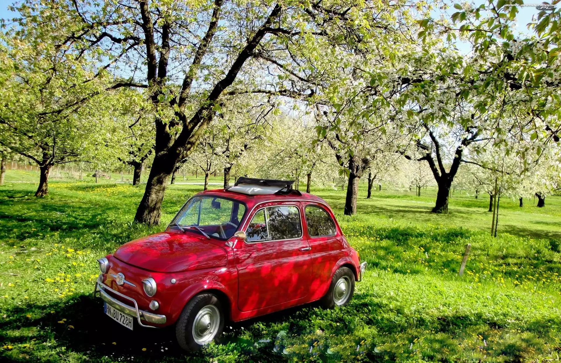 Trawa, Fiat 500, Sad- Zdjęcia samochodów